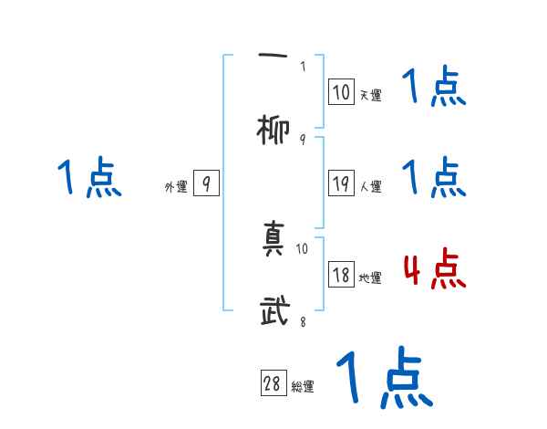 一柳真武さんの画数の鑑定結果