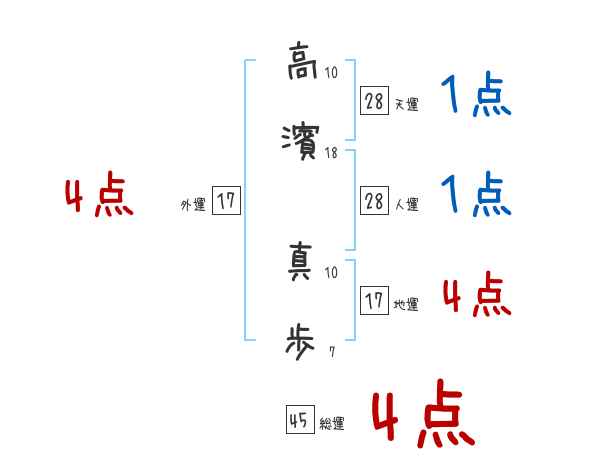 高濱真歩さんの画数の鑑定結果