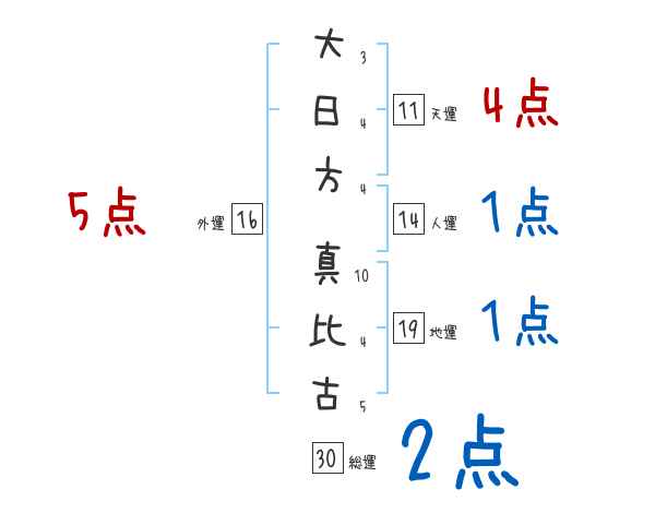 大日方真比古さんの画数の鑑定結果