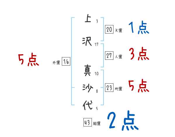 上沢真沙代さんの画数の鑑定結果