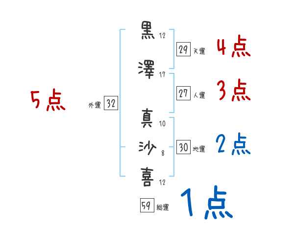 黒澤真沙喜さんの画数の鑑定結果