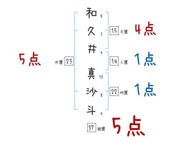 和久井真沙斗さんの画数の鑑定結果