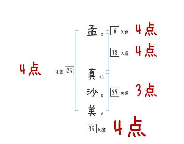 孟真沙美さんの画数の鑑定結果