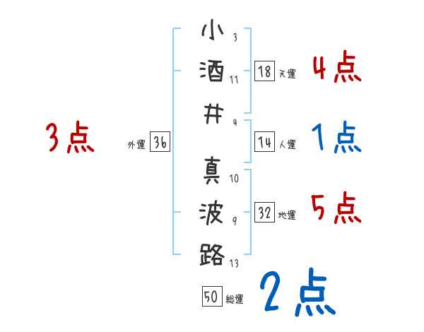 外運![]() | 小酒井真波路さんの外運は36画の3つ星!先見性が豊かです。多少神経質で苦労することも。 生活面を象徴する運勢です。外部から受ける影響力を表し、結婚運、家庭運や職場、環境への順応性を表します。 |
