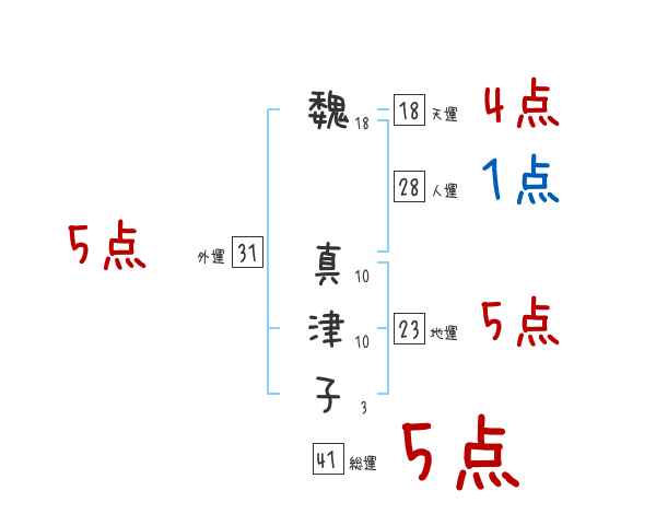 魏真津子さんの画数の鑑定結果