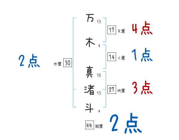 万木真渚斗さんの画数の鑑定結果