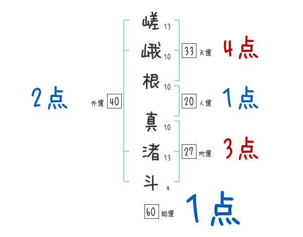嵯峨根真渚斗さんの画数の鑑定結果