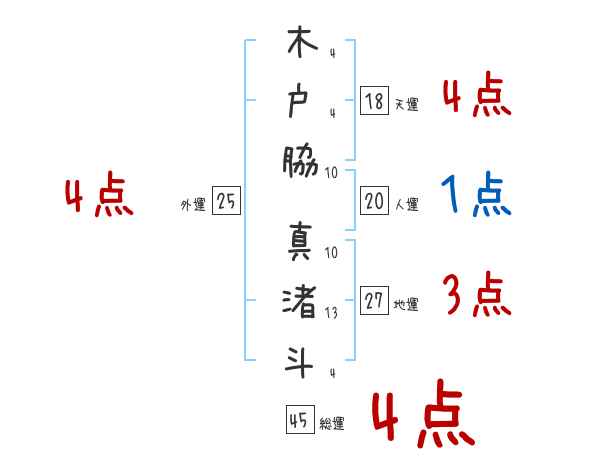 木戸脇真渚斗さんの画数の鑑定結果