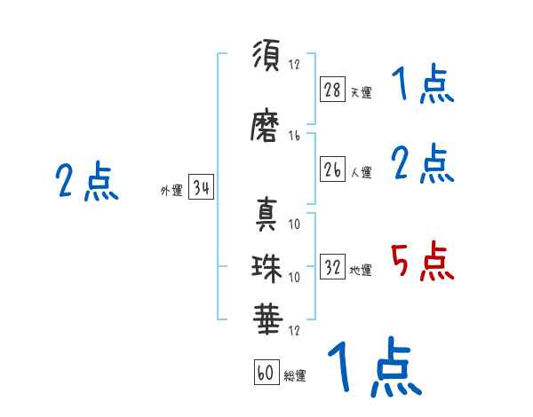 須磨真珠華さんの画数の鑑定結果