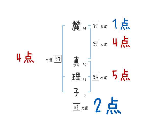 天運![]() | 麓真理子さんの天運は19画の1つ星!優れた才能を持ちますが、協調性が足りないことも。周りの人と協力する事を意識しましょう。 家系が持つ宿命的な運勢を表します。祖先から受け継いだ苗字ですので自分の力が及びません。家柄を象徴します。 |