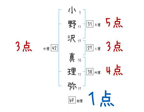 外運![]() | 小野沢真理弥さんの外運は42画の3つ星!病気に注意。多芸であるが消極的でおとなしい。 生活面を象徴する運勢です。外部から受ける影響力を表し、結婚運、家庭運や職場、環境への順応性を表します。 |