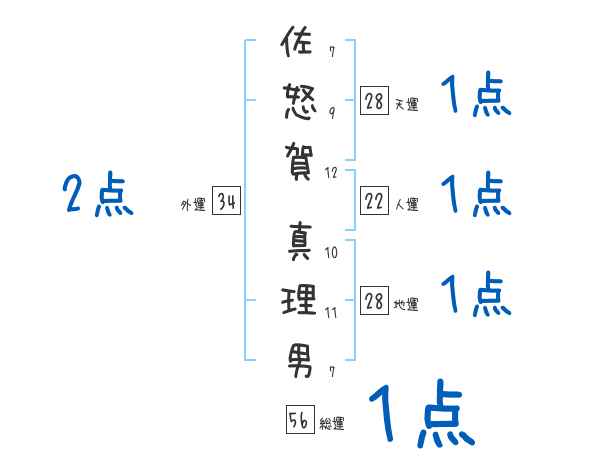 地運![]() | 佐怒賀真理男さんの地運は28画の1つ星!家庭環境に注意。スポーツで活躍できる能力があるかも。 個性を表す基礎的な運勢です。性格形成や対人関係、行動力など家庭環境に影響されます。主に誕生してから20歳くらいまでの若年期の運勢を表します。 |