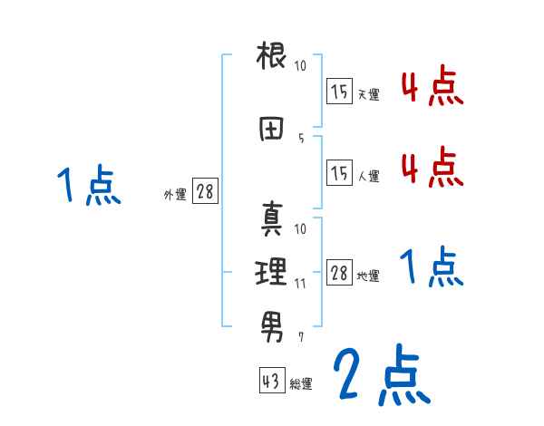 根田真理男さんの画数の鑑定結果