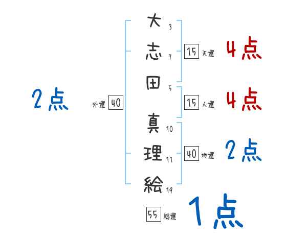 外運![]() | 大志田真理絵さんの外運は40画の2つ星!自信過剰で物事に固執するためトラブルに注意。 生活面を象徴する運勢です。外部から受ける影響力を表し、結婚運、家庭運や職場、環境への順応性を表します。 |