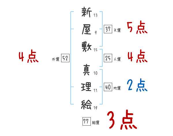 新屋敷真理絵さんの画数の鑑定結果