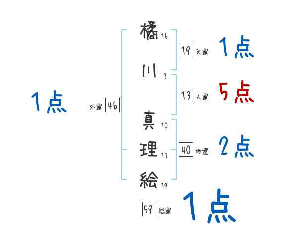 人運![]() | 橘川真理絵さんの人運は13画の5つ星!才能に恵まれ人気がある。名声を手に入れる。円満な人生。 性格や才能などを表す2番目に重要な運勢です。人間関係や協調性、社会的な成功に影響します。主に20歳から50歳ぐらいまでの中年期の運勢を表します。 |