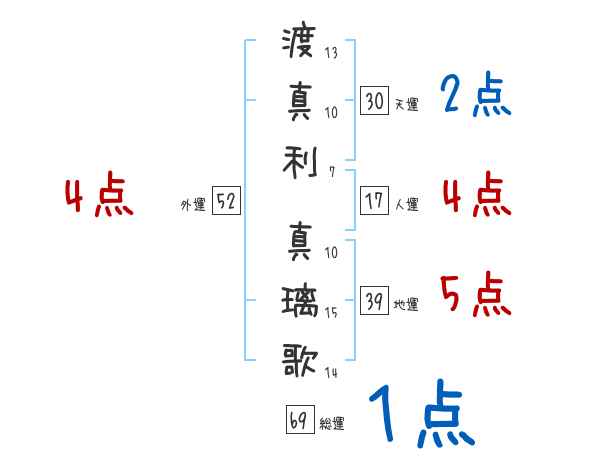 渡真利真璃歌さんの画数の鑑定結果