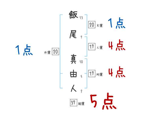 総運![]() | 飯尾真由人さんの総運は37画の5つ星!努力家で順応性に優れる。現実的な考え方ができ忠実に物事をこなす。 あなたの人生を表す1番重要な運勢です。生涯を通じて影響する総合運となり、主に50歳以降の晩年期に影響を及ぼします。 |