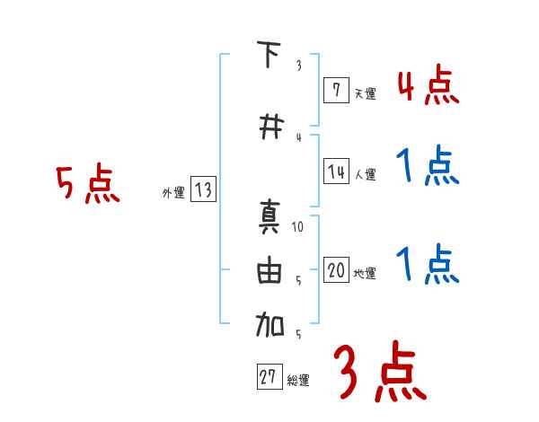 下井真由加さんの画数の鑑定結果