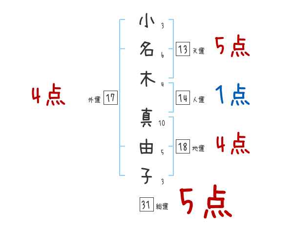 小名木真由子さんの画数の鑑定結果