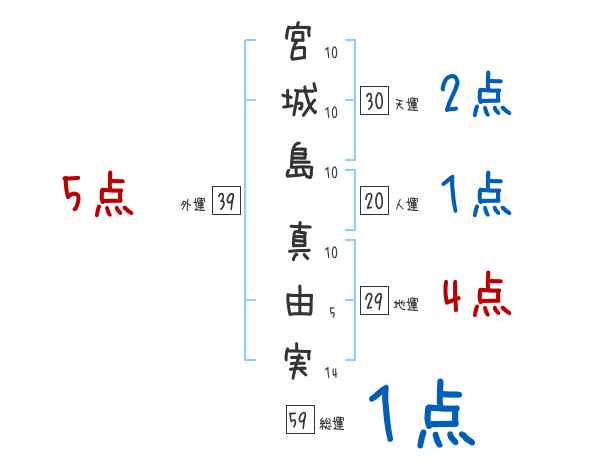 宮城島真由実さんの画数の鑑定結果