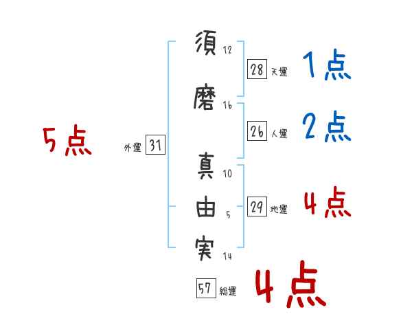 天運![]() | 須磨真由実さんの天運は28画の1つ星!家庭環境に注意。スポーツで活躍できる能力があるかも。 家系が持つ宿命的な運勢を表します。祖先から受け継いだ苗字ですので自分の力が及びません。家柄を象徴します。 |