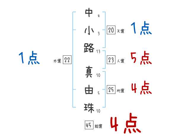 外運![]() | 中小路真由珠さんの外運は22画の1つ星!努力することが苦手ないっぽう手先が器用。芸術性にも優れる。 生活面を象徴する運勢です。外部から受ける影響力を表し、結婚運、家庭運や職場、環境への順応性を表します。 |