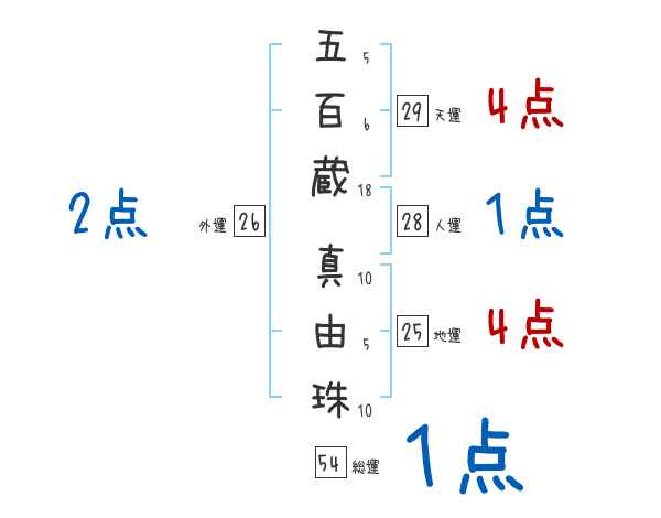 五百蔵真由珠さんの画数の鑑定結果