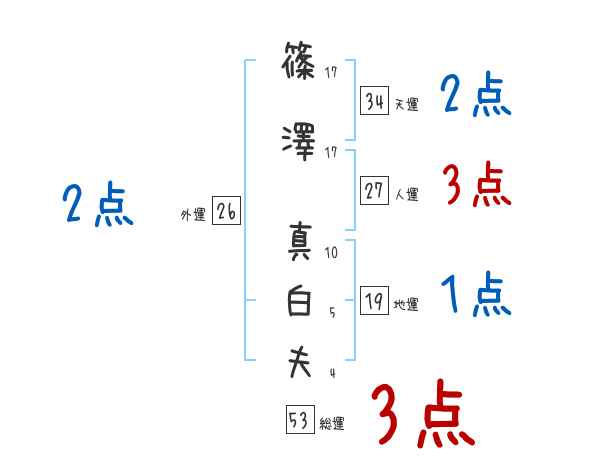 篠澤真白夫さんの画数の鑑定結果