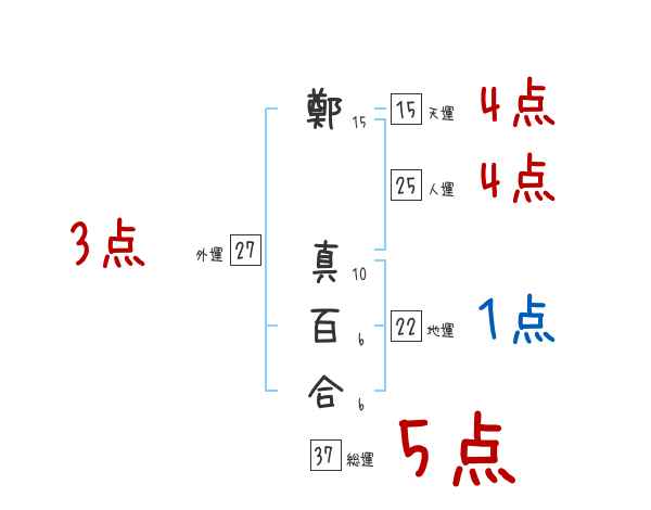 鄭真百合さんの画数の鑑定結果