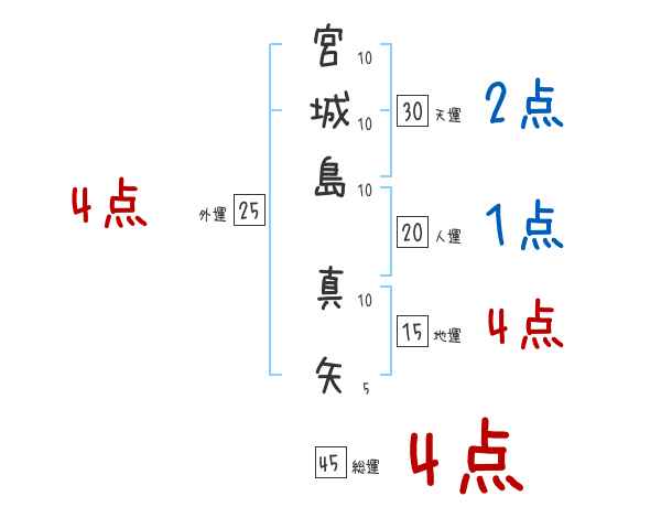 宮城島真矢さんの画数の鑑定結果