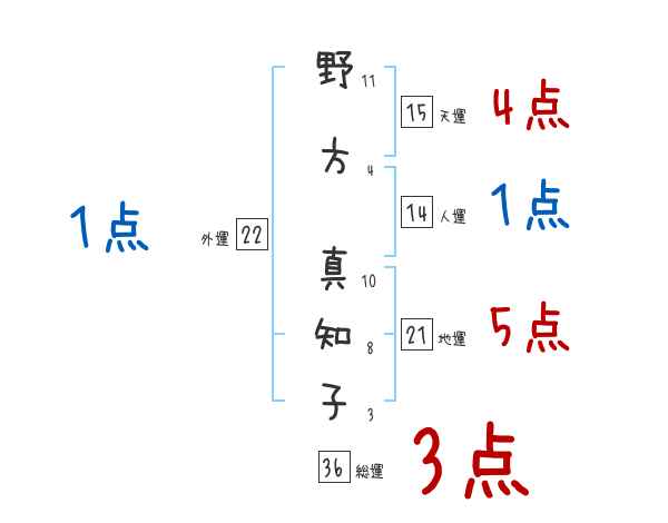 天運![]() | 野方真知子さんの天運は15画の4つ星!人徳があり出世する。順調に物事を進め円満な人生。 家系が持つ宿命的な運勢を表します。祖先から受け継いだ苗字ですので自分の力が及びません。家柄を象徴します。 |