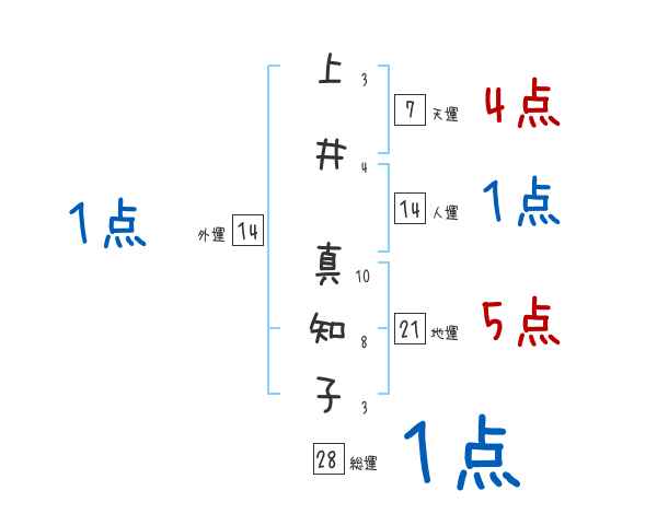 上井真知子さんの画数の鑑定結果