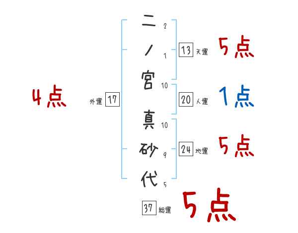 二ノ宮真砂代さんの画数の鑑定結果