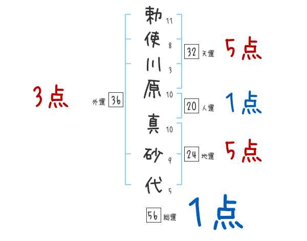 外運![]() | 勅使川原真砂代さんの外運は36画の3つ星!先見性が豊かです。多少神経質で苦労することも。 生活面を象徴する運勢です。外部から受ける影響力を表し、結婚運、家庭運や職場、環境への順応性を表します。 |