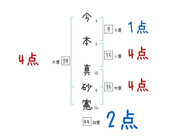今本真砂憲さんの画数の鑑定結果