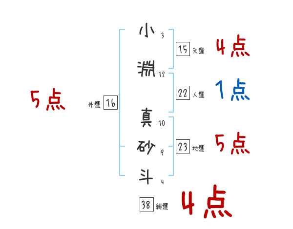 小淵真砂斗さんの画数の鑑定結果