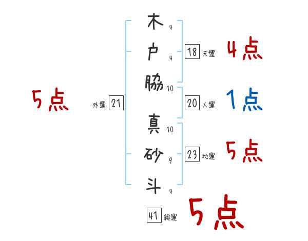 外運![]() | 木戸脇真砂斗さんの外運は21画の5つ星!統率力がある。独立し成功する。名誉を手に入れる。 生活面を象徴する運勢です。外部から受ける影響力を表し、結婚運、家庭運や職場、環境への順応性を表します。 |