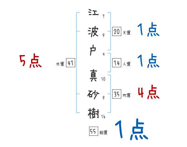 地運![]() | 江波戸真砂樹さんの地運は35画の4つ星!温厚な性格で感受性が高い。穏和な性格で人望が厚い。 個性を表す基礎的な運勢です。性格形成や対人関係、行動力など家庭環境に影響されます。主に誕生してから20歳くらいまでの若年期の運勢を表します。 |