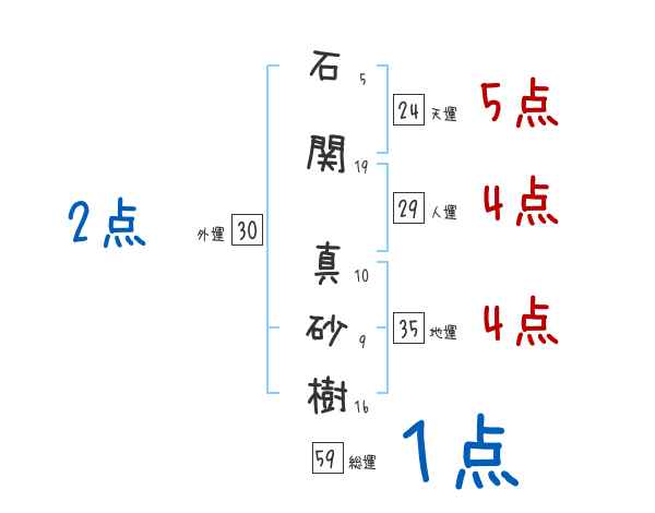 石関真砂樹さんの画数の鑑定結果