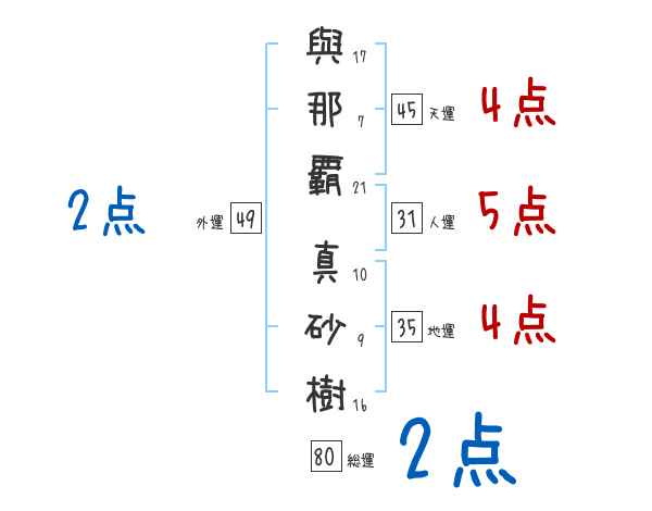 與那覇真砂樹さんの画数の鑑定結果