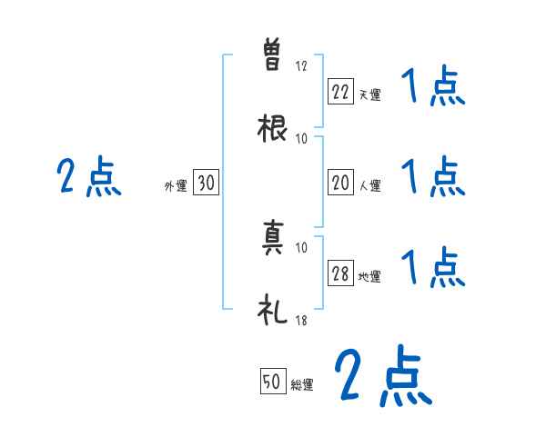 外運![]() | 曽根真礼さんの外運は30画の2つ星!浮き沈みの激しさに注意しましょう。 生活面を象徴する運勢です。外部から受ける影響力を表し、結婚運、家庭運や職場、環境への順応性を表します。 |