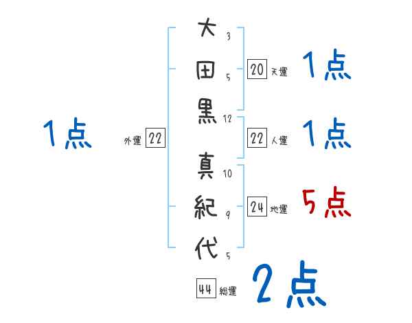 大田黒真紀代さんの画数の鑑定結果