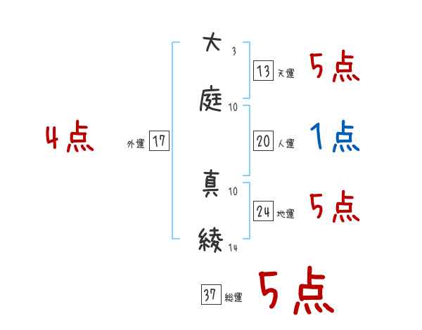 天運![]() | 大庭真綾さんの天運は13画の5つ星!才能に恵まれ人気がある。名声を手に入れる。円満な人生。 家系が持つ宿命的な運勢を表します。祖先から受け継いだ苗字ですので自分の力が及びません。家柄を象徴します。 |