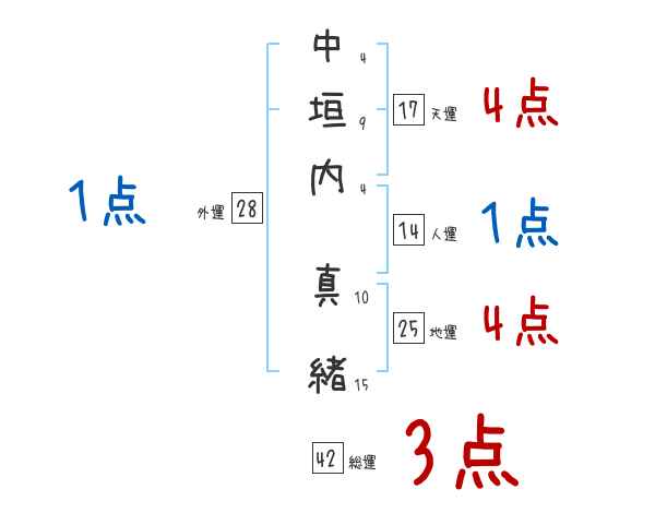 外運![]() | 中垣内真緒さんの外運は28画の1つ星!家庭環境に注意。スポーツで活躍できる能力があるかも。 生活面を象徴する運勢です。外部から受ける影響力を表し、結婚運、家庭運や職場、環境への順応性を表します。 |