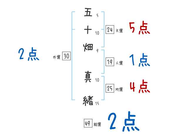 五十畑真緒さんの画数の鑑定結果