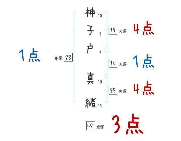 外運![]() | 神子戸真緒さんの外運は28画の1つ星!家庭環境に注意。スポーツで活躍できる能力があるかも。 生活面を象徴する運勢です。外部から受ける影響力を表し、結婚運、家庭運や職場、環境への順応性を表します。 |