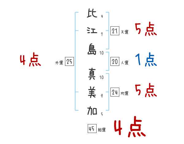 天運![]() | 比江島真美加さんの天運は21画の5つ星!統率力がある。独立し成功する。名誉を手に入れる。 家系が持つ宿命的な運勢を表します。祖先から受け継いだ苗字ですので自分の力が及びません。家柄を象徴します。 |