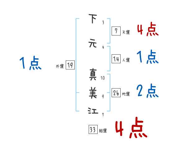 下元真美江さんの画数の鑑定結果