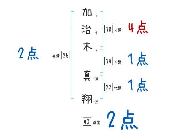 加治木真翔さんの画数の鑑定結果